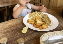 Jedzonko tak pyszne ,ze zdążyliśmy zrobić tylko wersje dziecięcą???? Porcje duże nawet dla menu dziecięcego . Polecamy flądrę i dorsza .